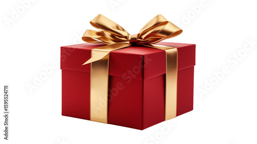 Obraz premium Red gift box tied with golden ribbon and bow for celebration