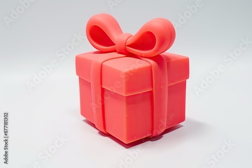 © munawaroh, Obraz premium Red gift box with a bow on a white background.