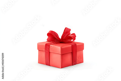 © GenBy, Fototapeta premium Red gift box with a ribbon, white background