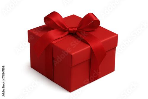 © Tanja, Fototapeta premium Red Gift Box with Beautiful Satin Ribbon Bow on Transparent Background