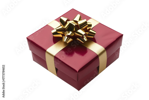 Obraz premium Red gift box with gold ribbon and bow isolated on a transparent background