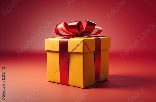 Obraz premium red gift box with golden ribbon