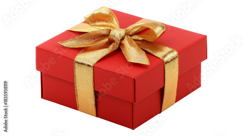 Obraz premium Red Gift Box with Golden Ribbon and Bow on White Background