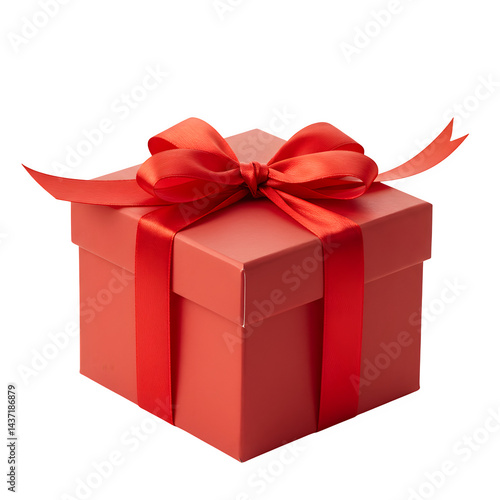 Fototapeta premium Red gift box with red ribbon and red bow on white or transparent background, PNG