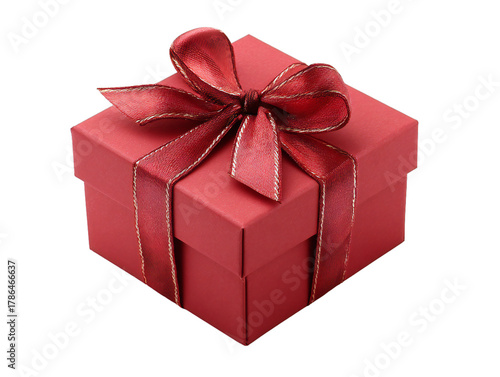 Fototapeta premium Red gift box with red ribbon bow isolated on transparent background