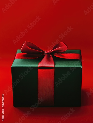 © Alexander Chaykin, Obraz premium Red Gift Box with Ribbon and White Background
