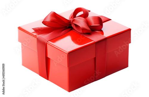 Obraz premium Red gift box with ribbon isolated on transparent background. Top view. PNG...
