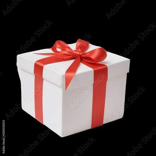 © HJStock, Fototapeta premium red gift box with ribbon on black background