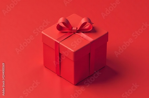 © dramapalma, Obraz premium Red Gift Box with Ribbon Standing on red Background. AI-generated