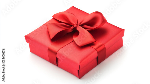 © Daniel, Fototapeta premium Red Gift Box with Satin Bow Isolated on White Background