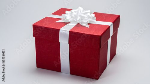 Obraz premium Red gift box with white ribbon and bow, centered product shot on clean...
