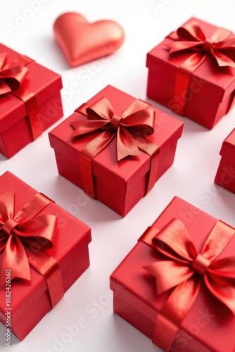 © Prasert, Obraz premium Red gift boxes with shiny bows, Christmas theme Isolated on white , bow, festive, holiday decorations