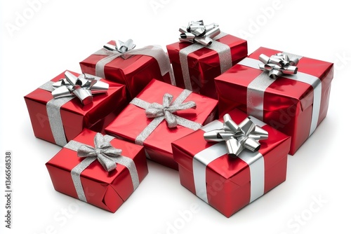 © photopixelstudio, Obraz premium Red gift boxes with silver ribbon