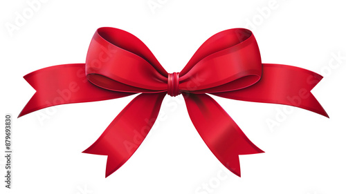 © Tony Baggett, Fototapeta premium Red gift ribbon bow of silk or satin used on a Christmas or birthday present, png file cut out and isolated on a transparent background, festive stock illustration image