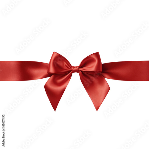© epicraw, Fototapeta premium Red gift ribbon bow on transparent background PNG Generative AI