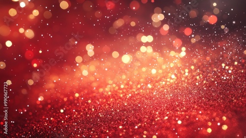 © h4kunA, Fototapeta premium Red glitter background with blurry lights.