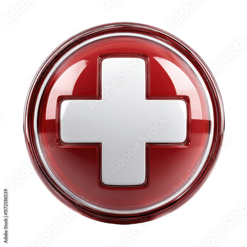 Fototapeta premium Red glossy button with white cross