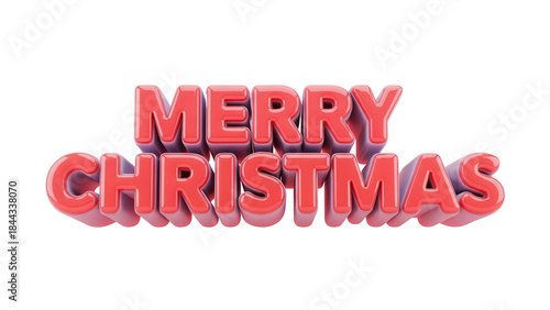 © Shanza, Fototapeta premium Red Glossy 'MERRY CHRISTMAS' 3D Text Isolated on White Background