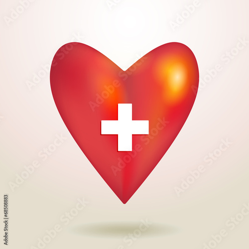 Fototapeta premium Red glossy shiny three-dimensional heart 3d on a white backgroun