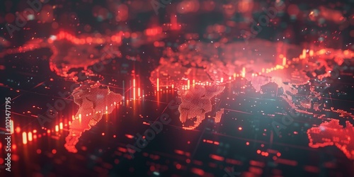 © duyina1990, Obraz premium Red glowing circuit board with world map in background