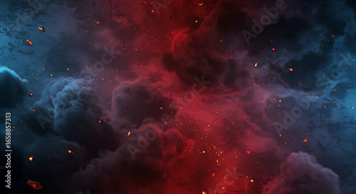 © Foyez Ullah, Fototapeta premium Red Glowing Earth Surface with Ash and Smoke Effect