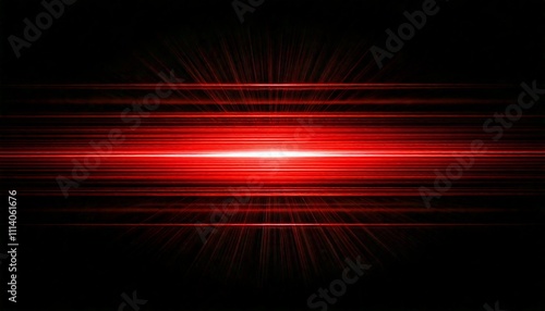 Fototapeta premium Red glowing light effect on black background with abstract horizontal gradient lines and lens flare