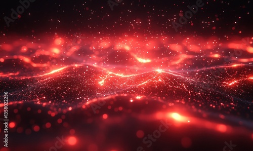 Obraz premium Red glowing particles forming abstract landscape