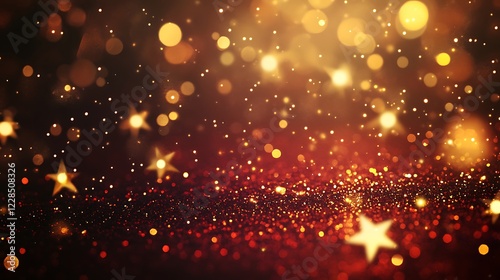 © lisa, Fototapeta premium Red Gold Glitter Background With Stars