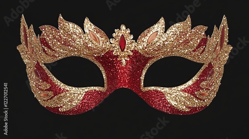 © Windi, Naklejka premium Red gold glitter Venetian mask on black