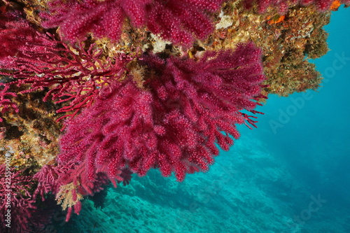 Obraz premium Red gorgonian soft coral, violescent sea-whip Paramuricea clavata, underwater in the Mediterranean sea, Cap de Creus, Costa Brava, Spain