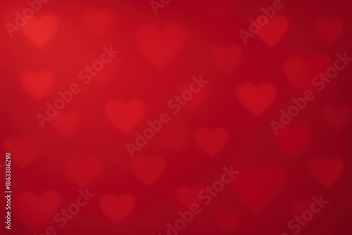 © Barsimur, Obraz premium Red Gradient Valentine Background with Blurred Hearts. Suitable for Valentines Day and year-round romantic use.