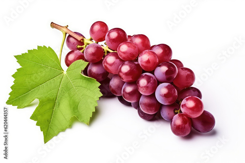 Fototapeta premium Red grape with leaves isolated on white background. (ai generated)