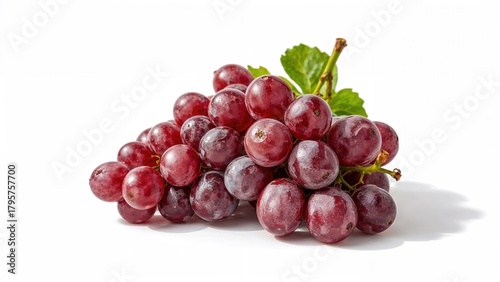 Fototapeta premium Red grapes arranged with a green leaf, fresh fruit, and healthy snack....
