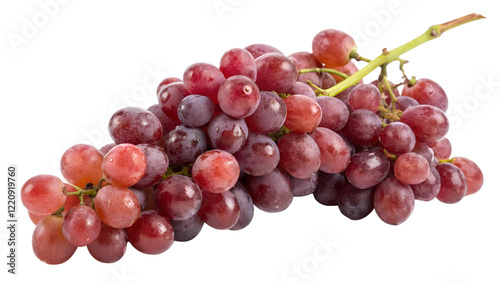 Fototapeta premium Red grapes, bunch of grapes, fresh fruit, vibrant color, juicy, ripe, stem attached, detailed texture, glossy skin, photorealistic, white background, high resolution, macro photography, food photograp