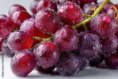 Fototapeta premium Red Grapes: Fresh, juicy red grapes glistening with droplets, ready to be...