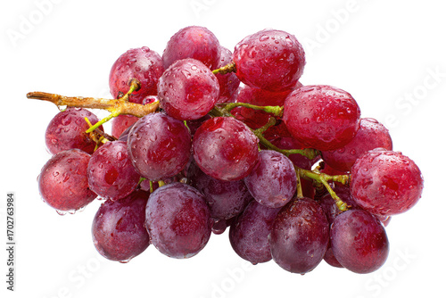 © Iwan, Fototapeta premium Red grapes, glistening with water droplets, cluster on vine