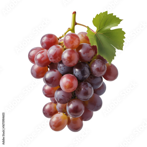 © SOHIDUL, Fototapeta premium Red grapes with green leaf isolated on a transparent background purple