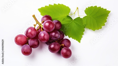 © CStock, Fototapeta premium Red grapes with green leaves and half sliced on white background.
