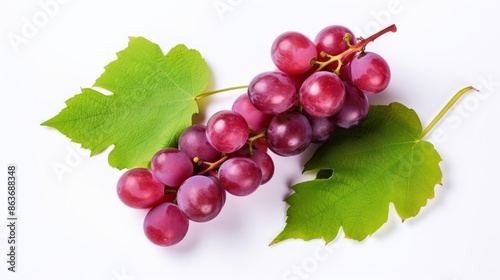 © CStock, Fototapeta premium Red grapes with green leaves and half sliced on white background.