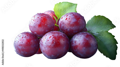 © Zucc, Obraz premium Red Grapes with Water Drops and Green Leaves on Black Background