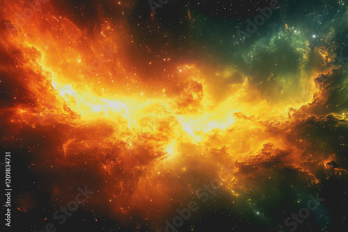 © PHAISITSAWAN, Obraz premium red green, and yellow ideology disintegrates in a spectacular galactic explosion.