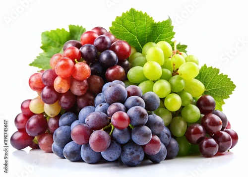 © prapatsorn, Fototapeta premium Red Green Black Grapes White Background - Fresh Fruit Stock Photo
