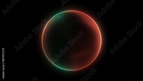 Obraz premium Red green particle sphere black background liquid round shape changing gradient soft energy reflections glowing abstract circular motion 4K cinematic futuristic sci fi visual depth