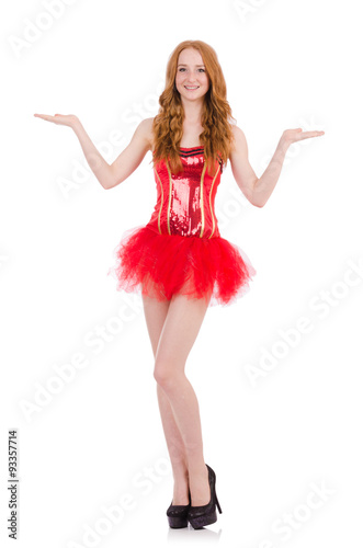 Naklejka premium Red hair girl in carnival costume isolated on white