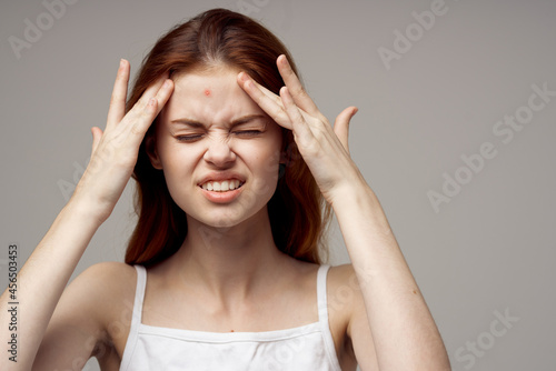 Fototapeta premium red-haired woman facial skin problems dermatology isolated background