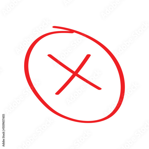 Fototapeta premium Red Hand-drawn Cross Mark on with circle