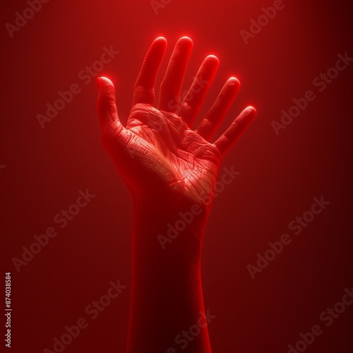 © Shaji, Obraz premium red hand on red background with soft lighting " ai generated "