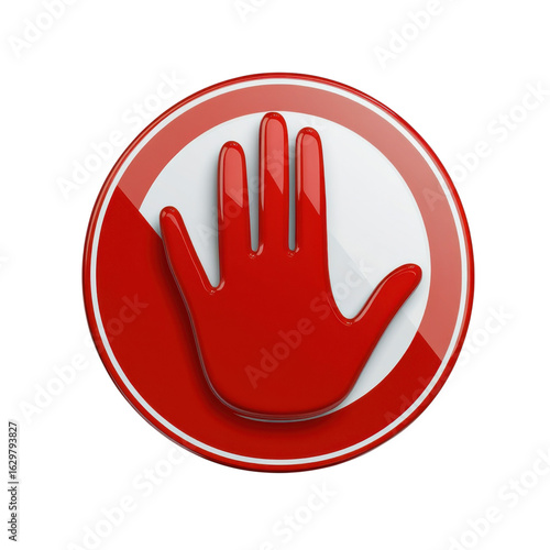 Obraz premium Red hand stop sign, a universal symbol for prohibition, restriction on transparent background