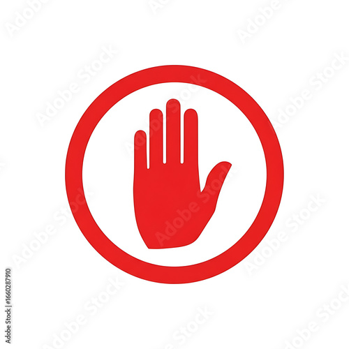 © adebaguspr, Obraz premium Red Hand Stop Sign on White Background