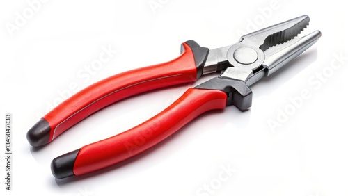 © artisttop, Obraz premium Red-handled Pliers on White Background